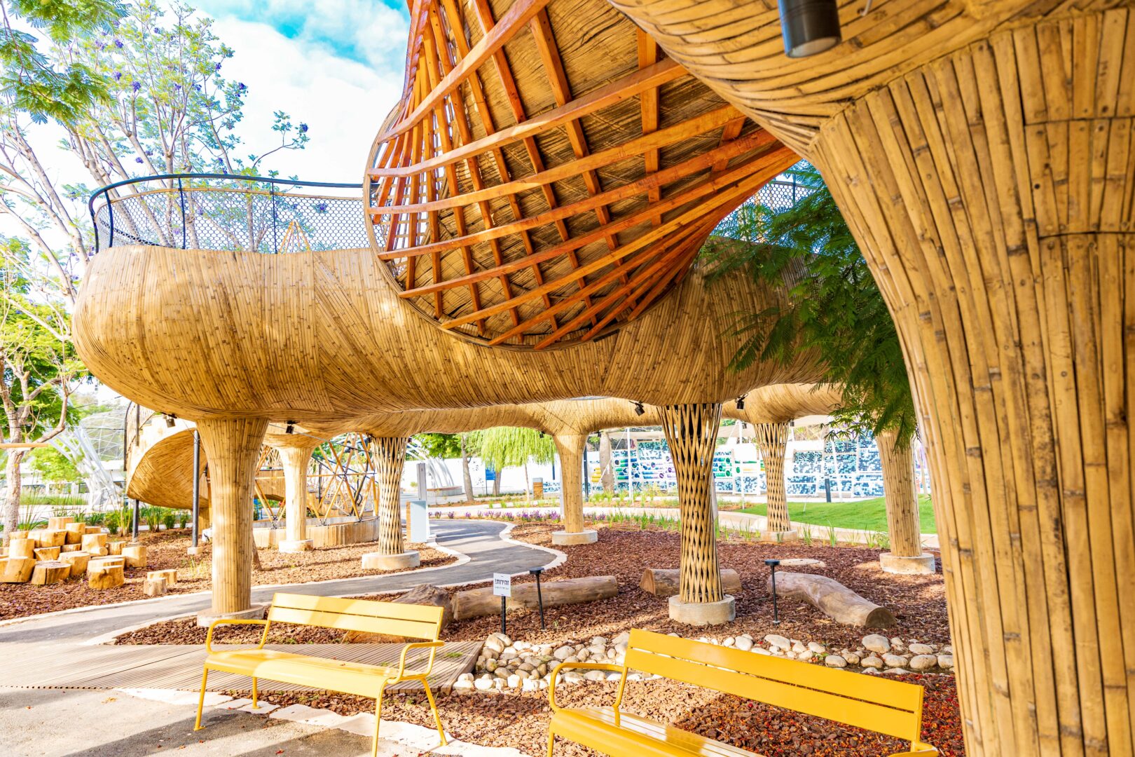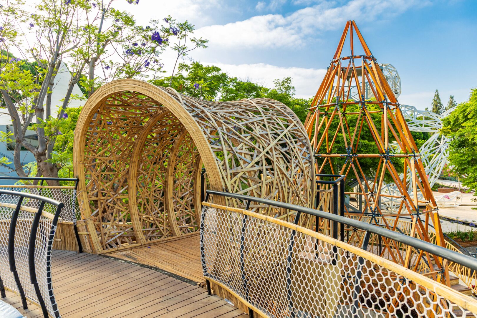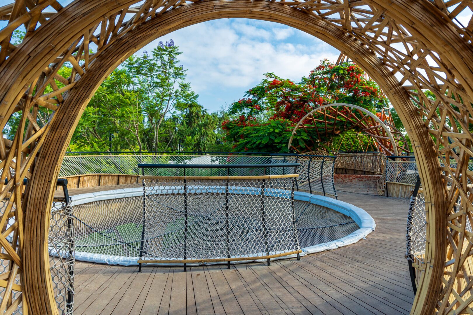 נטייל בבית עצום שעטוף כולו בבמבוק בין העצים