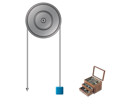 מחוץ לחלון מותקנת גלגלת שעליה מושחל חבל עם שני סלים, כך שכאשר סל אחד מונח על הארץ השני נמצא בדיוק ליד החלון. אפשר להוריד או להעלות את הסלים רק אם מכניסים חפצים (או בני אדם) בעלי משקלים שונים לתוך הסלים כך שהסל הכבד יותר יורד והקל יותר עולה. אך יש להיזהר, אם הפרש המשקלים בין הסלים עולה על שישה ק”ג, הנפילה של הסל הכבד תהיה מהירה ברמה שמסכנת חיי אדם, אך לא מזיקה לקופסת תכשיטים. בנוסף, בכל סל יש מקום לשני בני אדם לכל היותר או לאדם בודד וקופסה יחידה.