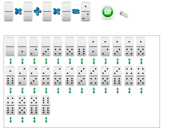 גם השבוע לפניכם חידת דומינו אינטראקטיבית. בחידה הפעם יש לקרוא את קוביות הדומינו כשברים. לדוגמה, תוצאת התרגיל היא חצי, כי המונה הוא 1 והמכנה 2.
