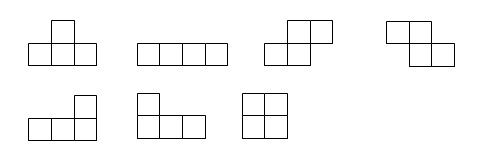 כפי שראינו בסרטון, יש שבעה חלקי טטרומינו אפשריים (סיבובים נחשבים שקולים, אך לא שיקופים):