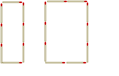 לפניכם 18 גפרורים שמסודרים בשני מרובעים, כך ששטחו של האחד גדול בדיוק פי שניים משטחו של השני.