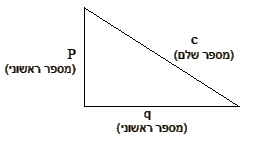נניח שאורכי הצלעות p ו-q במשולש הפיתגוראי שבאיור הם מספרים ראשוניים ושאורך הצלע c הוא מספר שלם. קיים