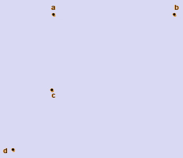התבוננו במפה: זהו אזור גדול בנגב שתוכלו לזהותו. מיקמתי בו שבע נקודות שממוספרות מ-1 עד 7. ארבע מהן גלויות וסימנתי אותן באותיות. אלה ההנחות לגבי הנקודות: