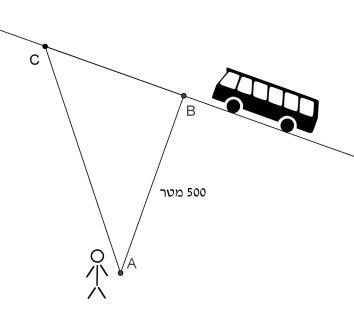 לעתים קרובות יואב יוצא מאוחר מדי מהבית, ועליו לרוץ כדי לתפוס את האוטובוס.עליו לצאת מהבית בשעה 6:00 בדיוק כשהוא רץ בדרך הקצרה ביותר, במהירות המרבית שלו שהיא 20 קמ”ש. מהירות האוטובוס היא 30 קמ”ש.