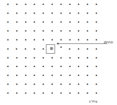 ד. במגירה שבשולחן השופטים תמצאו ציור של סריג נקודות. המרחק בין כל שתי נקודות סמוכות הוא קילומטר, ומסומנת שם נקודת התערוכה.