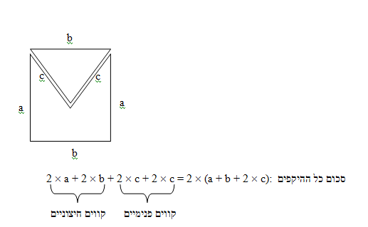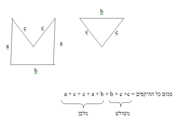 להלן דוגמה לחישוב סכום ההיקפים עם שני חלקים בלבד. לתשומת לבכם: הדוגמה איננה עם מספר אי-זוגי של חלקים!