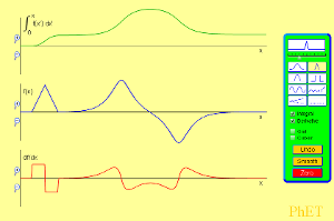 היישומון שלפנינו ממחיש איך נראים נגזרת ואינטגרל בצורה גרפית וכך מסביר את ההיגיון שמאחוריהם. לצפייה ביישומון לחצו על התמונה ופתחו את הקובץ המקושר (יישומון ג’אווה).