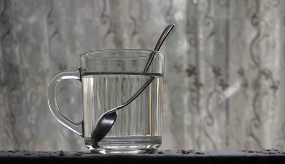 انكسار الضوء هو ظاهرة تحدث عند تغيّر زاوية مسار الضّوء أثناء انتقاله من وسط إلى آخر نتيجة لاختلاف سرعة الضّوء. في الصّورة: يؤدّي انكسار الضّوء عند انتقاله من الهواء إلى الماء إلى ظهور الملعقة وكأنّها مكسورة أو غير متّصلة.| shutterstock, Hsyn20