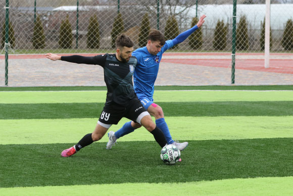 تحتوي جزيئات المطّاط المستخلَصة من الإطارات المُعاد تدويرها على ملوِّثات عديدة. لاعبا كرة قدم يلعبان على أرضيّة عشب اصطناعيّ | Shutterstock, A_Lesik