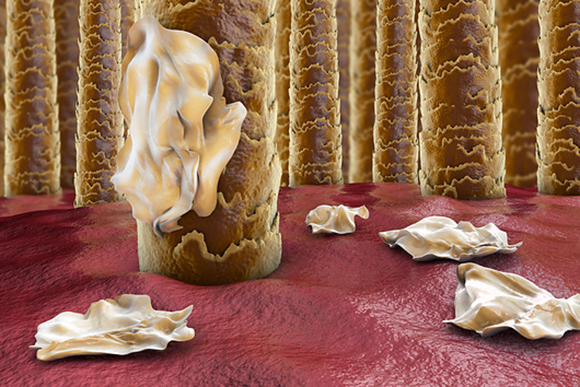 تتشكل على فروة الرأس عندما تكون عملية التخلص من خلايا الجلد الميتة سريعة للغاية. فروة الرأس مع قشرة | صورة: Kateryna Kon / Science Photo Library