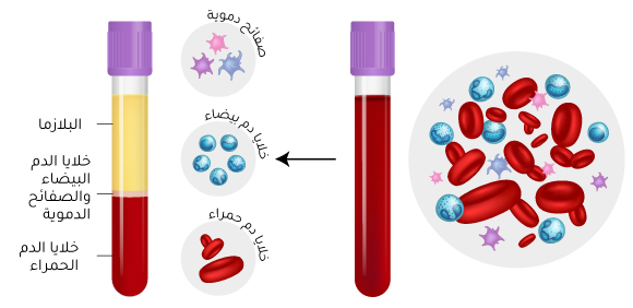 في الجسم السّليم، يكون لون الدّم أحمر غامقًا وموحّدًا، ولكن عندما يتمّ تخزين الدّم في أنبوب اختبار مدّة يوم، أو عند استخدام عمليّة فصل أسرع مثل جهاز الطّرد المركزيّ، سوف نلاحظ أنّ الدّم ينفصل إلى ثلاث طبقات تختلف عن بعضها في اللّون والكثافة.
