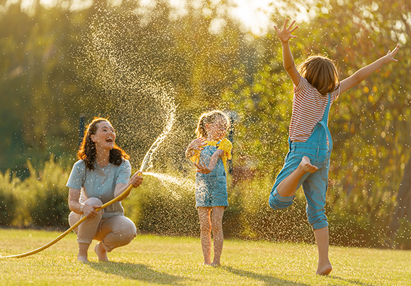 عادةً ما يذكّرنا رشّ الماء بالفرح والانتعاش والحيوية التي يضفيها الماء لحياتنا. لكن ليس الجميع يشتركون في هذا الفرح. أطفال يقفزون فرحين بملامسة الماء من الخرطوم | Shutterstock، Yuganov Konstantin