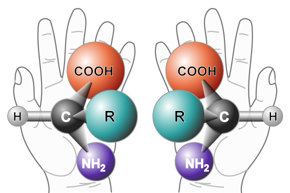الجزيئات اليدوانيّة هي جزيئات ذات خصائص مشابهة لليدين حيث تتكوّن من نفس التّركيبة الكيميائيّة ولكنّها معكوسة، إحداها يمينيّة والأخرى يساريّة | المصدر: ويكيبيديا, Perhelion