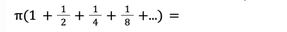 والآن علينا أن نتذكّر ما يمثّله هذا المجموع ولماذا أردنا حسابه منذ البداية. وهذا المجموع هو نتيجة التثقيل. أي أنّها أكبر من مجموع أخر – تلك التي تمثّل حجم الكعكة. لقد قمنا بذلك لمعرفة ما إذا كان من الممكن تناولها. إذا كان حجمها أقلّ من 2π، فإنّنا لا نعرف ما هو بالضّبط، لكنّنا نعلم أنّه ليس لا نهائيًّا. بطريقة غير بديهيّة للغاية، حجم هذه الكعكة، التي تحتوي على عدد لا حصر له من الطوابق، محدود.