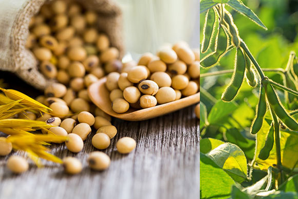 يُعتبر فول الصويا غنيًّا نسبيًّا بالبروتين، لكنّ المبنى ثلاثيّ الأبعاد للبروتينات يكون كرويًّا، وليس ليفيًّا مثل بروتينات الأنسجة العضليّة. مخطّط المعلومات البيانيّ: ماريا جوروخوفسكي و د. دافنا ماندلر