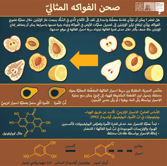 أقبل الصّيف ومعه الفواكه الرّائعة. لكن لماذا تحمرُّ قطع التّفاح عند قطعها ولماذا تكتسي الموزة الصّفراء ببقع غامقة اللّون بعد وقت قصير؟ ستفحص في التّجربة التّالية كيفيّة الحفاظ على نضارة الفواكه والخضار.