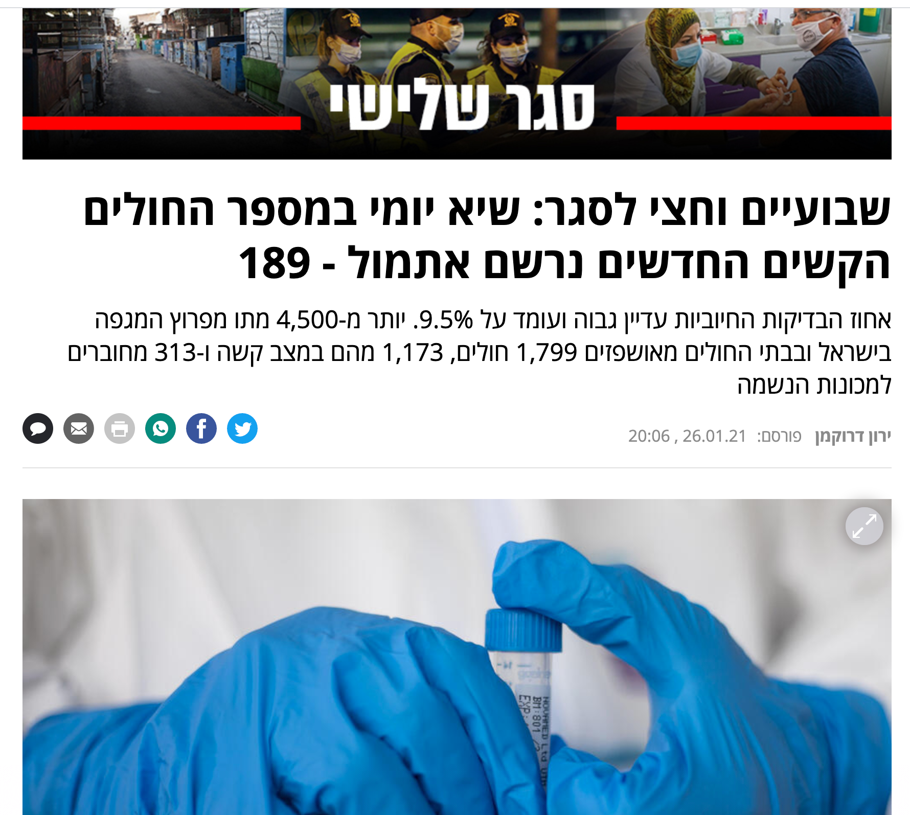 لربما سمعنا في اليومين الأخيرين نبأ إصابة شاب في العشرينات بمضاعفاتٍ بعد تلقيه اللقاح احتاج على إثرها للعلاج الطارئ في مشفى هداسا في القدس، لكن وفق الأطباء المعالجين، فعلى ما يبدو فإنّ الشاب كان قد أصيب بعدوى الكورونا وشفي دون أن يعلم، وبالتالي فقد طوّر جسمه مضادات طبيعيّة ولم يكن بحاجة فعلية للقاح حاليًأ، عدا عن أنّ على ما يبدو فإنه يعاني من متلازمة نادرة الحدوث سببت له ردّ فعلٍ حاد، وليس من الواضح إن كان ذلك بسبب اللقاح بالفعل أم لا.