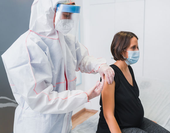امرأة حامل تتلقّى لقاح الكورونا | المصدر: Shatterstock