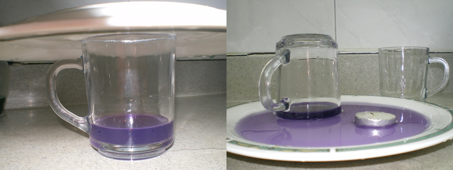 في هذه التجربة، سوف نجعل السائل يُسحب نحو الأعلى إلى داخل الكأس المقلوبة – باستخدام شمعة. تتطلبُ التجربة إشراف شخصٍ بالغ!