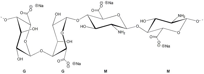 المبنى الكيميائيّ لألجينات الصوديوم، تخطيط: Volker83، ويكيبيديا