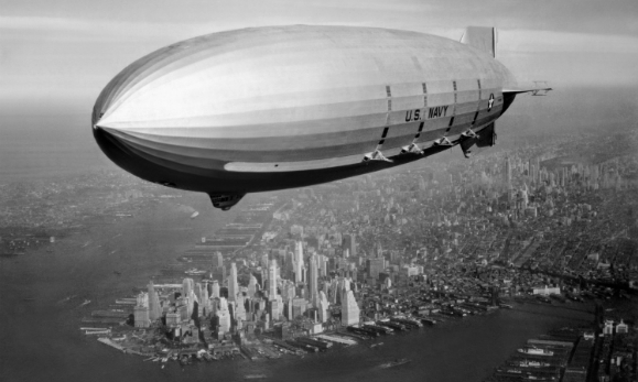 صورة: منطاد بحرية الولايات المتحدة الأمريكية "مايسون" فوق ميناء نيويورك نحو عام 1933 | الصورة: shutterstock