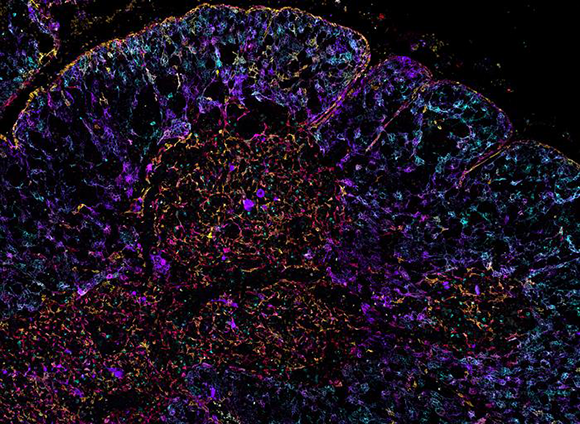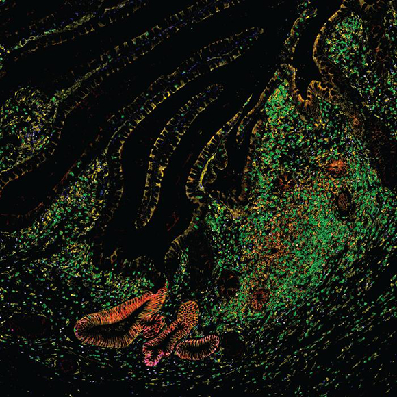 من المتوقّع أن تكون أطالس الأنسجة المختلفة بمثابة أساس للمقارنة في الدراسات المستقبليّة. الخلايا المعويّة لمريض يعاني من مرض التهاب الأمعاء | مقتبس من المقال A. Oliver, N. Huang, R. Li, et al. 2024