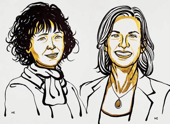 الحائزتان على جائزة نوبل في الكيمياء 2020 جنيفر دودنا وإيمانويل شاربنتييه.| رسم توضيحي: موقع جائزة نوبل