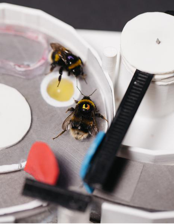 على الرغم من صغر حجم أدمغته، فقد أظهر النحل الطنّان (Bombus terrestris) في الماضي أنّه قادر على تعلّم حركات جديدة، مثل دحرجة الكرة أو سحب الخيط، وكذلك التعلّم من بعضه البعض. وفي دراسة نشرت العام الماضي، قام الباحثون بتعليم النحل فتح صندوق صغير عن طريق لفّ غطائه، وبالتالي الكشف عن كوب مملوء بمحلول السكّر. كانت هناك طريقتان للوصول إلى السكّر: استطاع النحل دفع مقبض أحمر صغير ولفّ الغطاء باتّجاه عقارب الساعة، أو دفع مقبض ثانٍ أزرق اللون، وبالتالي يدير الغطاء بالاتّجاه المعاكس.