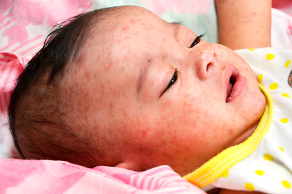 من بين حوالي 32 مليون حالة إصابة بالمرض مُنعت، أكثر من 13 مليون حالة هي إصابة بالحصبة. طفل مُصاب بالحصبة | Jim Goodson / CDC / Science Photo Library
