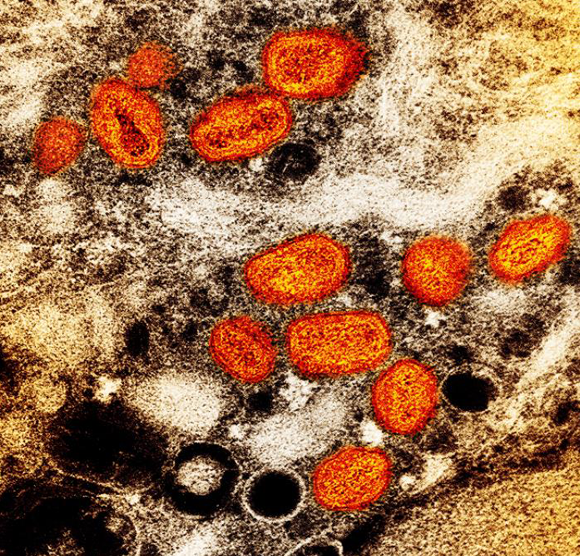ينتمي الفيروس المسبّب للمرض إلى عائلة الفيروسات الّتي تضمّ، أيضًا، الفيروسين المسبّبين لمرض الجدري. صور المجهر الإلكترونيّ للفيروس | CDC/ National Institute of Allergy and Infectious Diseases (NIAID)