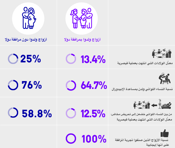 نتائج الدّراسة الّتي قارنت بين الولادات مع وجود مرافق والولادات مع وجود مرافق ودولا | تصميم: ليآت بيلي
