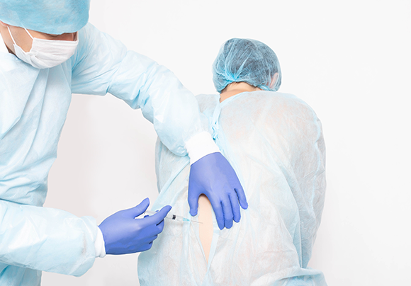 تشعر العديد من النّساء أثناء المخاض بمشاعر مركّبة حول تلقّي حقنة الإيبيدورال لتخفيف آلام المخاض. امرأة تتلقّى حقنة إيبيدورال | HenadziPechan, Shutterstock