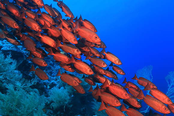 إنّ السّلوك الجماعيّ تلفّه نفحة من التنازل عن الذات لهدف شامل أكبر من مجموعِ أجزائِهِ. مجموعة أسماك في شعاب البحر الأحمر | Shutterstock, aquapix
