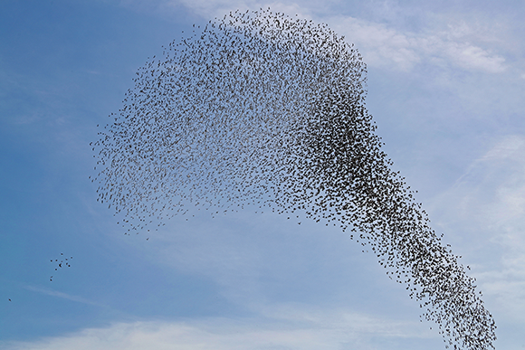 أنماط ديناميكيّة في السّماء. سربٌ من طيور الزّرزور يتحرّك في سماء إيطاليا | Shutterstock, Ruth Swan