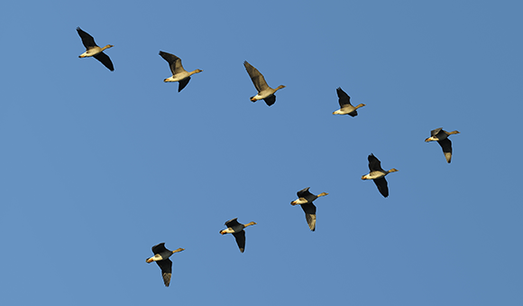 ناجع للطيور الكبيرة وليس للطيور الصغيرة وشديدة الاهتياج. إوز محلّق بشكل رأس سهم | Shutterstock, Ana Gram