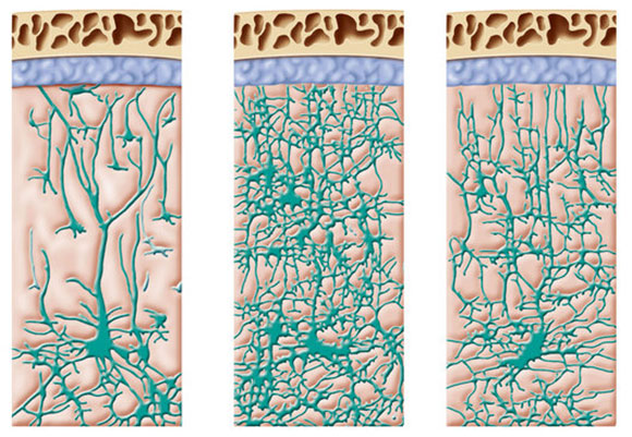في السنوات الأولى من حياة الطفل، ينمو دماغه ويتطوّر بسرعة كبيرة، بحيث يكبر حجمه وتزداد الروابط بين الخلايا العصبيّة. ومع ذلك، تتدهور الروابط غير المرغوب فيها بين الخلايا العصبيّة طوال الحياة وتتشكّل روابط أخرى مكانها اعتمادًا على نشاط الجسم والمؤشّرات الّتي يتلقّاها من البيئة. على مرّ السنين، حدث انخفاض كبير في معدّل نموّ وتطوّر الدماغ، لكنّ هذا لا يعني أنّ هذا التغيير ثابت، فلا يزال بإمكان الدماغ التغيير.