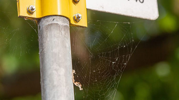 تمّ اكتشاف أنّ شبكة العنكبوت أداة فعّالة ومفيدة لالتقاط جزيئات البلاستيك من الهواء. إحدى الشبكات التي استخدمها الباحثون | University of Oldenburg/Daniel Schmidt