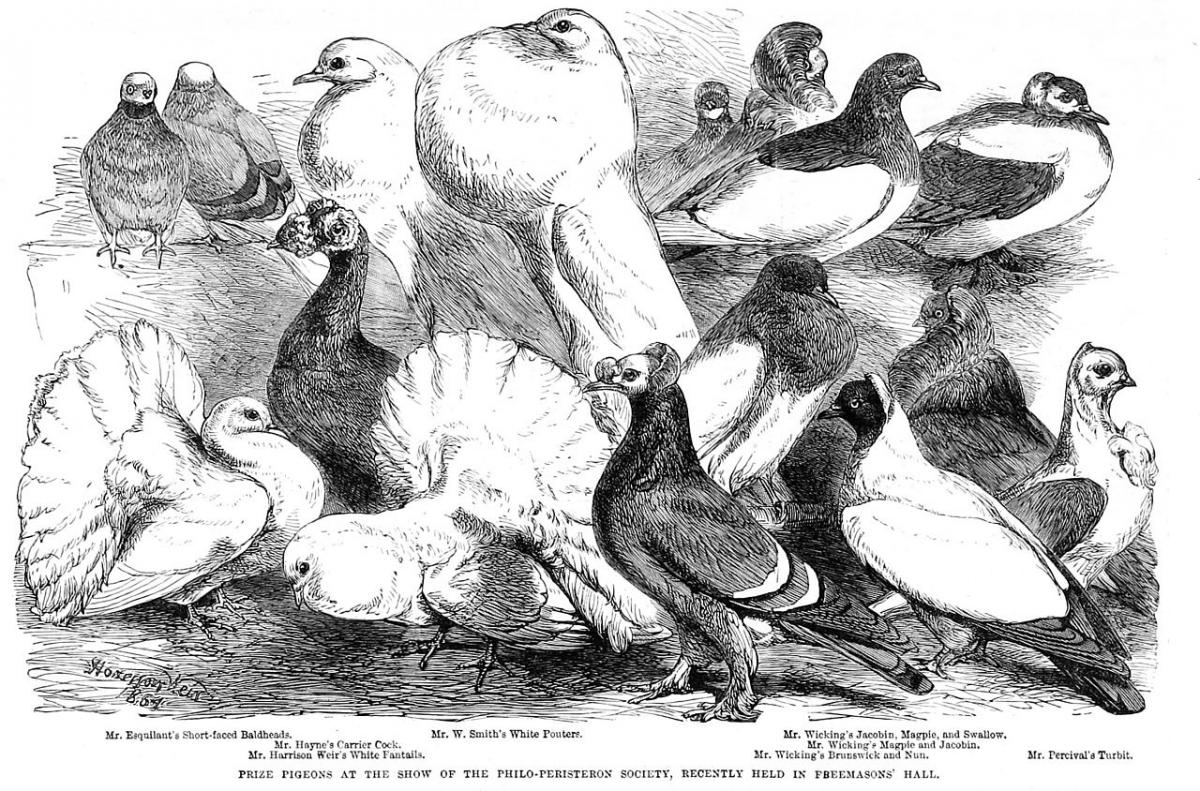 قدّم التّهجين بين الحمام أفضليّة لداروين كباحث. بما أنّ الأجيال تتغيّر بسرعة، فقد تمّ إجراء التّغييرات في إطار زمنيّ يسهل على الإنسان ملاحظته، ويمكن دراستها مباشرة. لم يكن مربّو الحمام (مثل داروين وبقيّة معاصريه) يعرفون آليّات الوراثة الّتي لم تكن مكتشفة بعد في ذلك الوقت، ولكن كان لديهم الكثير من الخبرة العمليّة، وعرفوا كيفيّة إحداث تغييرات من خلال التّهجين في طيورهم.