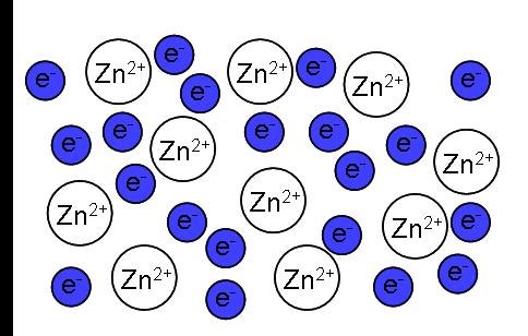 שריג של אבץ. בסה"כ המטען החשמלי הוא אפס כי מטען האלקטרונים מאזן את מטען היונים החיוביים.