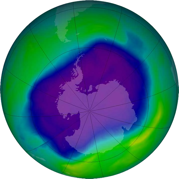 סימולציית מחשב של החור באוזון מעל אנטארקטיקה | מקור: נחלת הכלל, ויקיפדיה