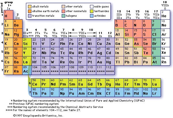 הטבלה המחזורית. הזכויות לתמונה שמורות לאנציקלופדיה בריטניקה.