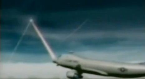 מטוס לייזר פוגע בטיל בזמן מעופו, תמונה מתוך הסרט על המערכת.