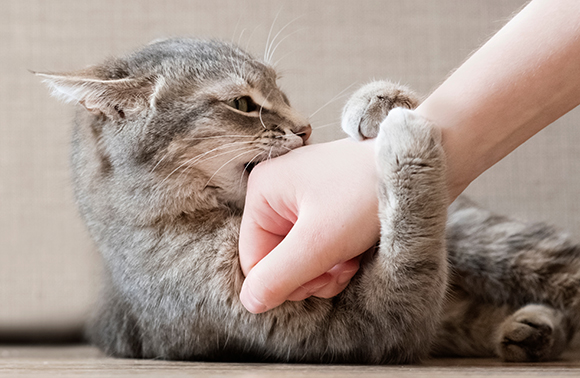 בני האדם נטו לבחור לגדל חתולים שהפגינו התנהגות חברותית. חתול נושך יד תוך כדי משחק | Sozina Kseniia, Shutterstock