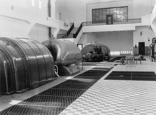 חדר הטורבינות בתחנת הכוח רדינג א' (1939) – התמונה לקוחה מארכיון חברת החשמל