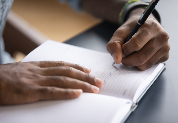 המשימות שנבחרו היו כאלה שהחוקרים שיערו שדיבור פנימי יכול להשפיע על הביצועים בהן. גבר כותב במחברת | Shutterstock, fizkes