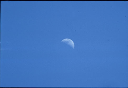 במהלך היום, הבהירות של השמיים "מעלימה" את האור של הכוכבים: אזור בשמיים שבו ישנו כוכב בהיר הוא אזור קטן מאשר אזור בשמיים ללא כוכב בהיר ועל כן העיניים שלנו לא יכולות להבחין בהבדל. אולם, האזור בשמיים המכיל את הירח הוא בהיר בהרבה ועל כן אנו רואים אותו. למעשה, אנו יכולים באור יום גם לראות לפעמים את כוכב הלכת נוגה.