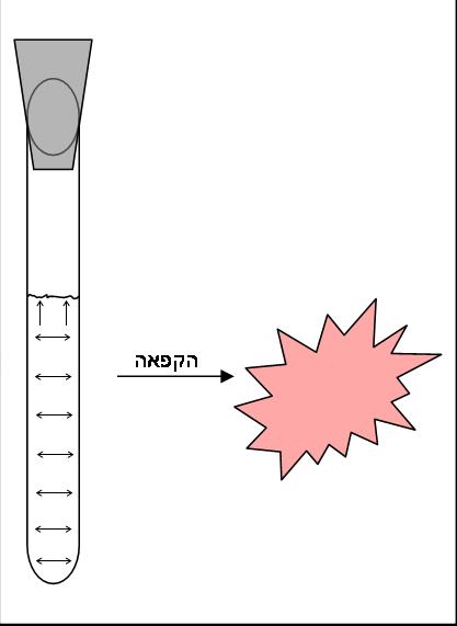 יש שטח פנוי גדול יחסית שמאפשר למים/קרח להתפשט בזמן הקירור, ולכן המבחנה לא נסדקת. אם תנסי להקפיא מבחנה מלאה עד הסוף וסגורה בפקק חזק – היא תיסדק בשתי התנוחות – כי בכל מקרה לא יהיה לקרח נפח פנוי להתפשטות.