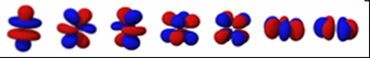 ענני האלקטרונים באורביטלים מסוג d (למעלה) ו- fלמטה (עיבוד מתוך ויקיפדיה)