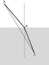 האור בוחר במסלול שהינו הקצר ביותר (זמן) להגעה לנקודה C.