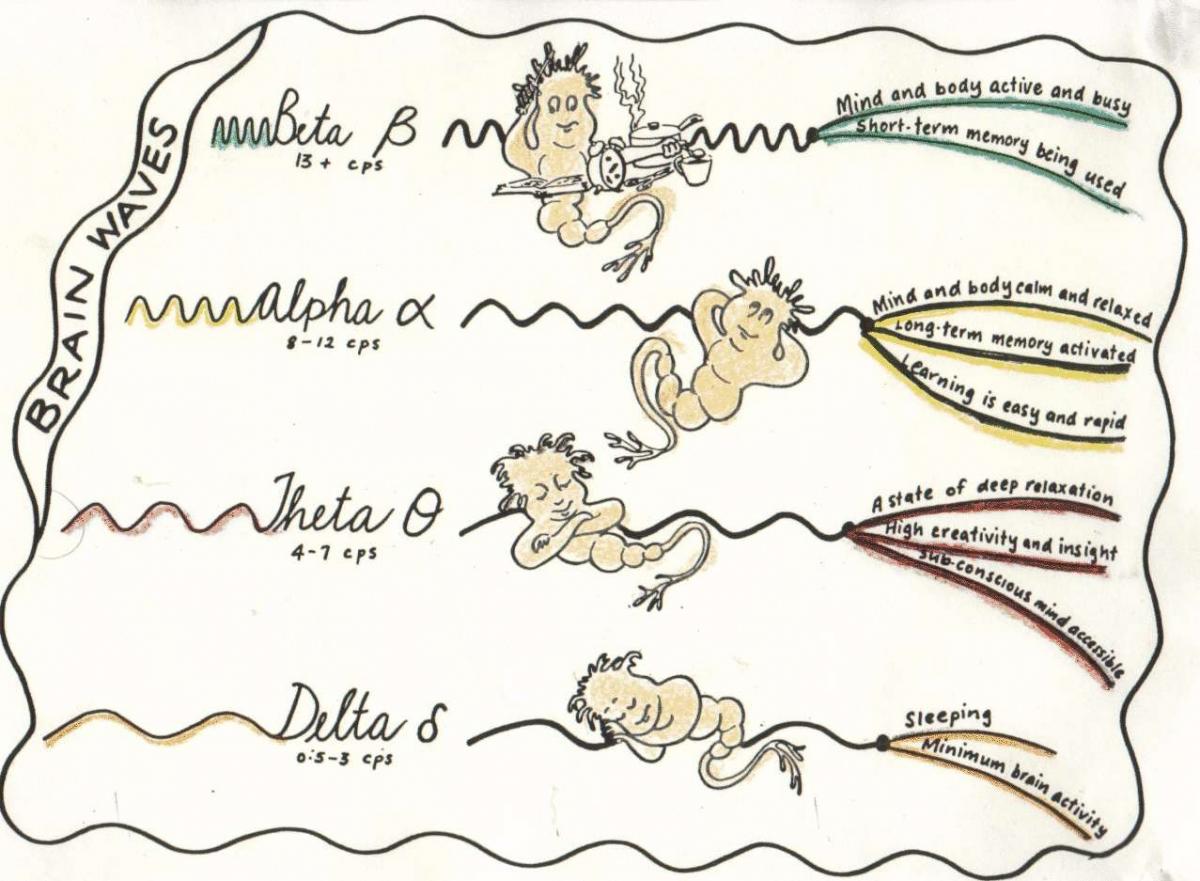 הפעילות החשמלית במוח נחלקת לחמישה תדרים (הנמדדים בהרץ): בטא, אלפא, טתא, דלתא וגמא: